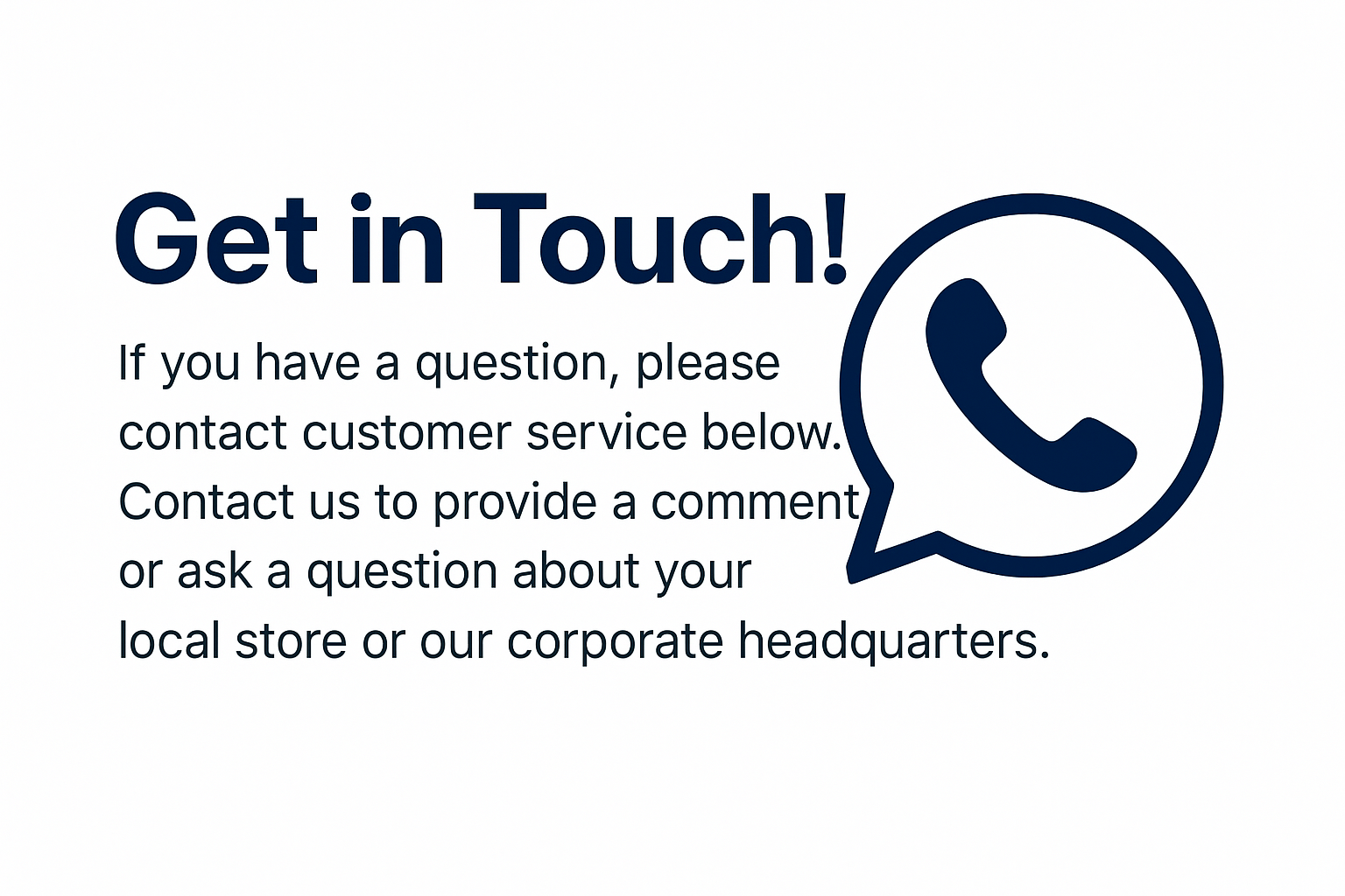 Contact us to provide a comment or ask a question about your local store or our corporate headquarters.
